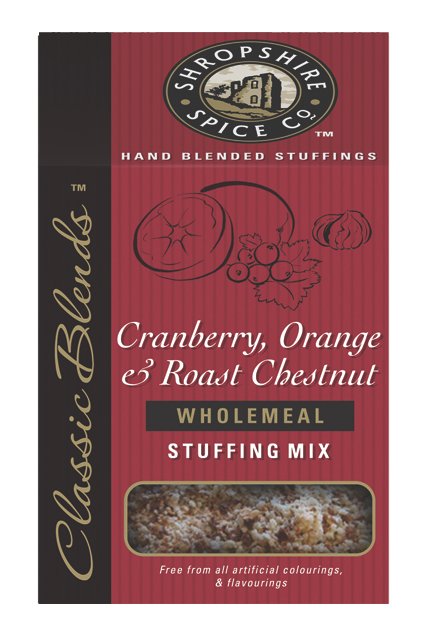 Cranberry, Orange and Roast Chestnut wholemeal stuffing mix is ideal with all poultry, pork, game and fish.