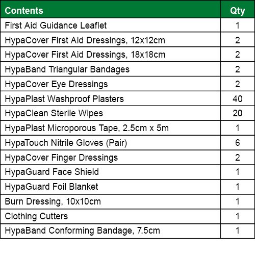 These are highly recommended first aid kits for any working environment. They offer a British Standard Compliant first aid kit at a great value price. A risk assessment should be done in order to assess any other first aid needs, however this first aid kit it is a good starter pack.