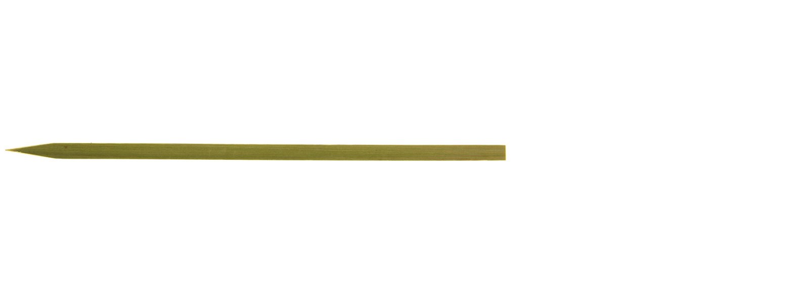 Flat Bamboo Skewers 6 x 180mm These strong flat skewers are perfect for cooking larger portions of food and ensure that the food is firmly secured. They are a natural Bamboo, green one side.