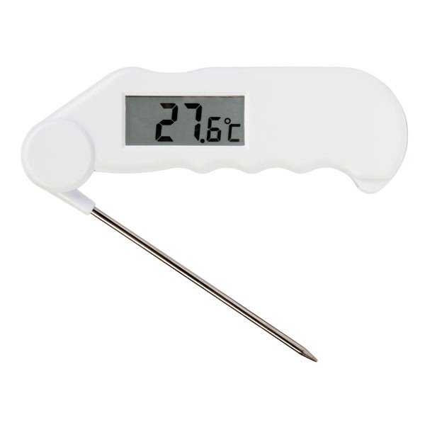 The water resistant Gourmet folding probe thermometer is an easy to use food thermometer, ideal for monitoring cooking, cooling and food holding temperatures as part of HACCP and health and safety procedures. The unit measures temperature over the range of -49.9 to 149.9 °C with a 0.1 °C/°F resolution and incorporates two push button switches, on/off and hold.