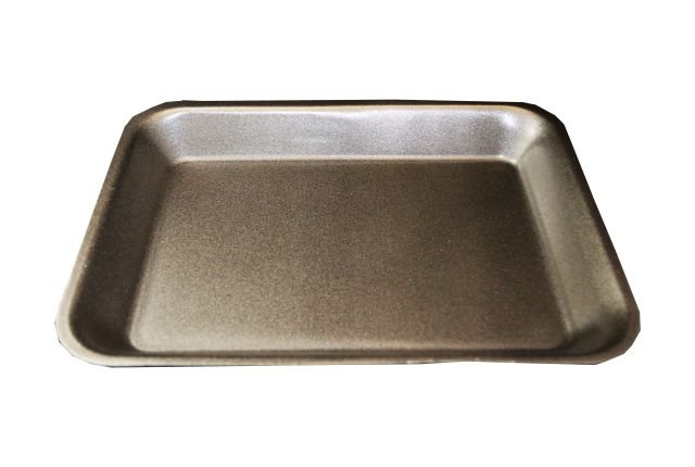 Black J4 Shallow (9.5×12.5×1″) non-absorbent, EPS (expanded polystyrene) tray.