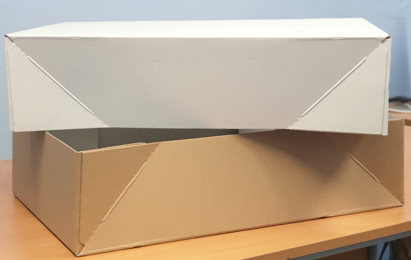 This is solid board Base and lid consisting of 25 Brown Bases. The dimensions are 580 x 380 x 150mm base, and 25 White lids 585 x 390 x 150mm